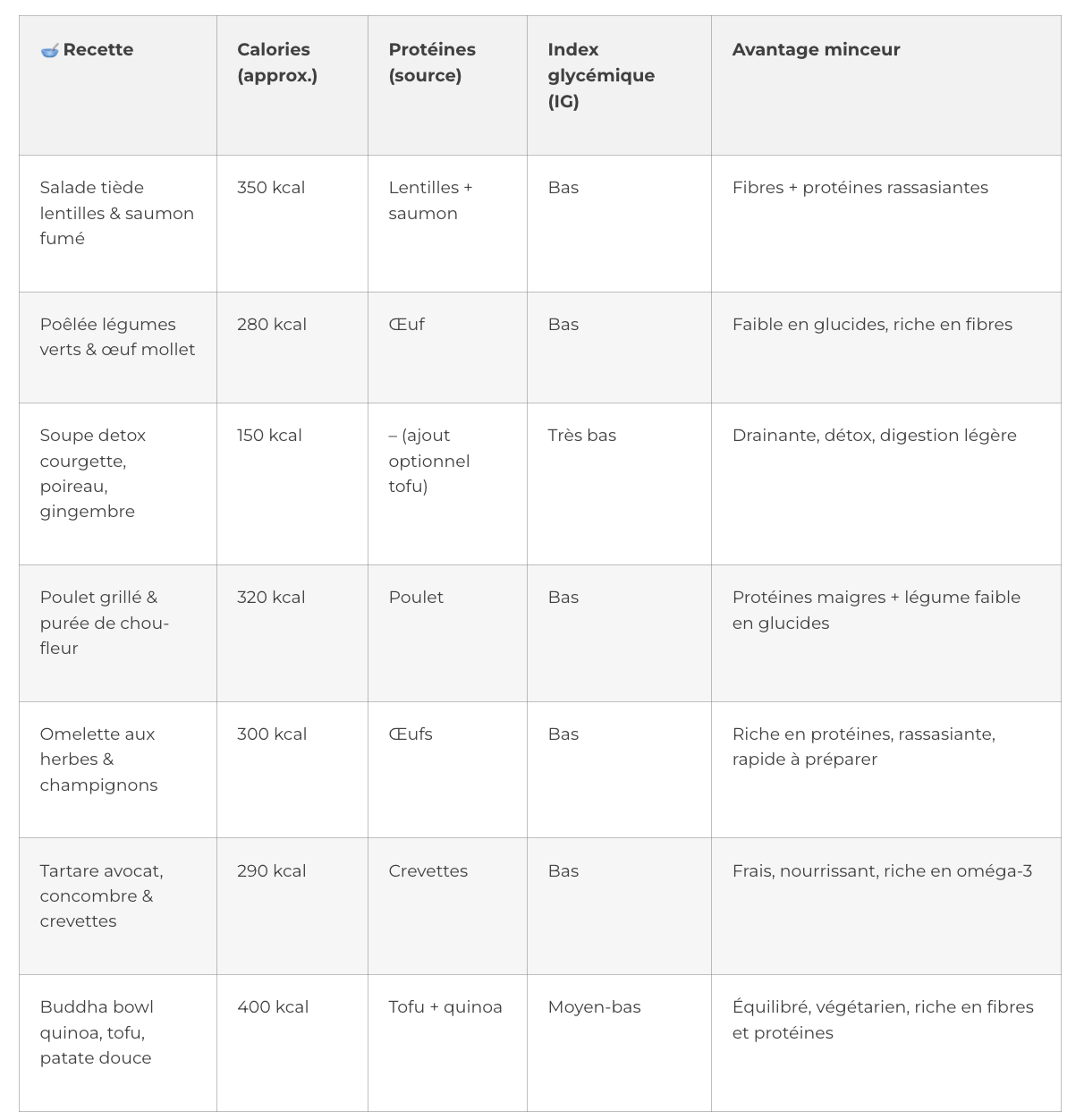 N’hésitez pas également à vous inspirer de notre top 20 des aliments pour bien maigrir.