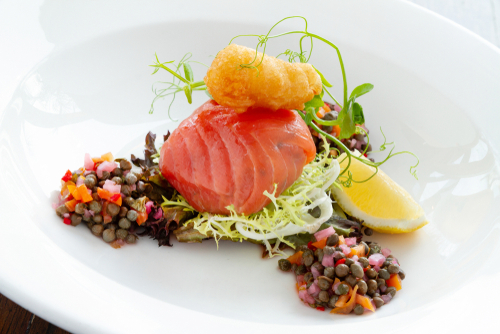 🥗 1. Salade tiède de lentilles, saumon fumé et roquette