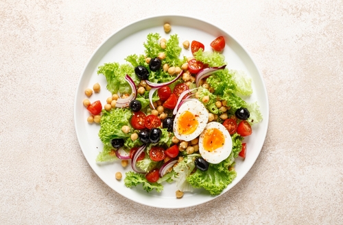 • légumes (ex. : brocolis, carottes, haricots verts, épinards, tomates, salades), idéalement crus ou cuits doucement à la vapeur. Riches en fibres, ils favorisent la digestion et la sensation de satiété ;