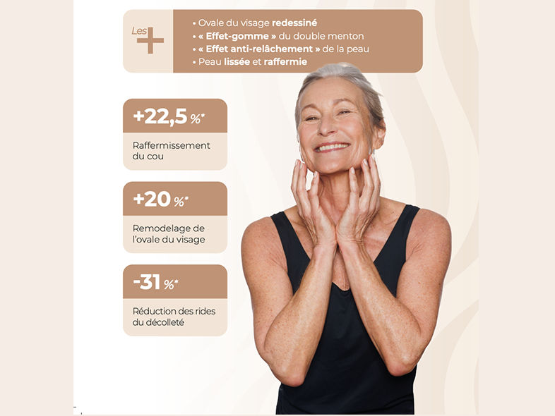 • Raffermissement cutané de l’ovale du visage et du cou