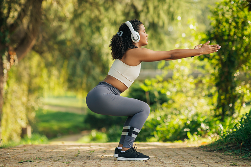 • après l’échauffement, commencez par une série de squats ;